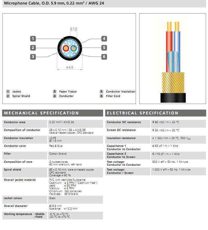 EWI DMX Cable 2 Core & Shield 6.4mm Dia – Per Meter