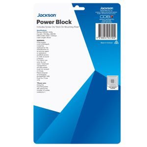 JACKSON 0.9m 4-Way Mountable Power Block. 2x USB-A (Fast Charge 2.1A).